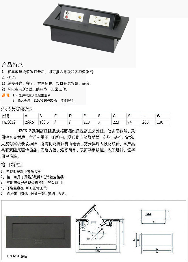 HZC312 HZC612系列阻尼式桌面插座