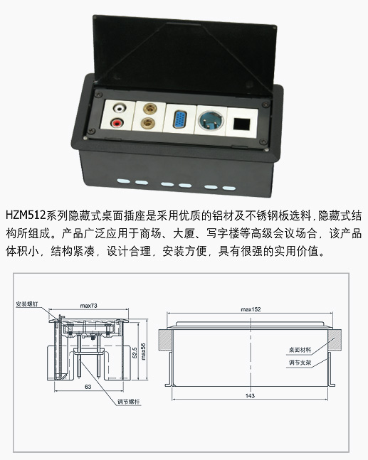 HZC512系列隐藏式桌面插座