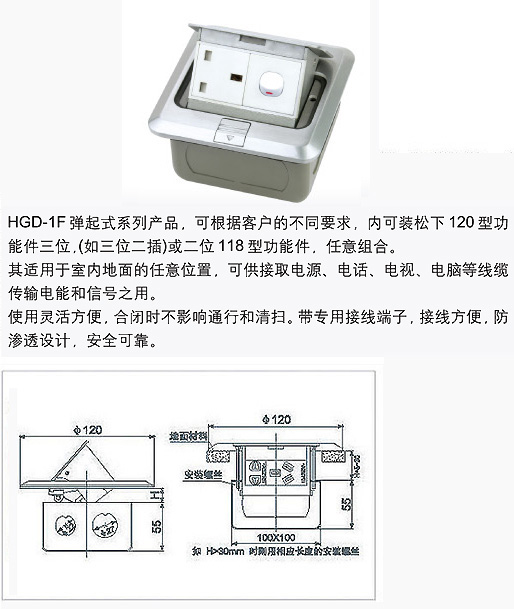 HGD-1F系列弹起式地面插座