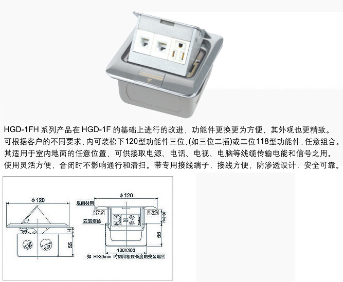 HGD-1FH系列弹起式地面插座