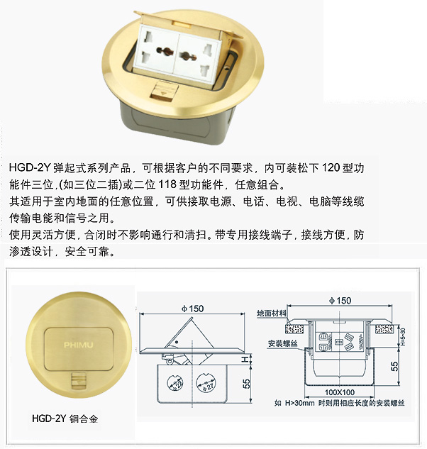 HGD-2Y系列弹起式地面插座