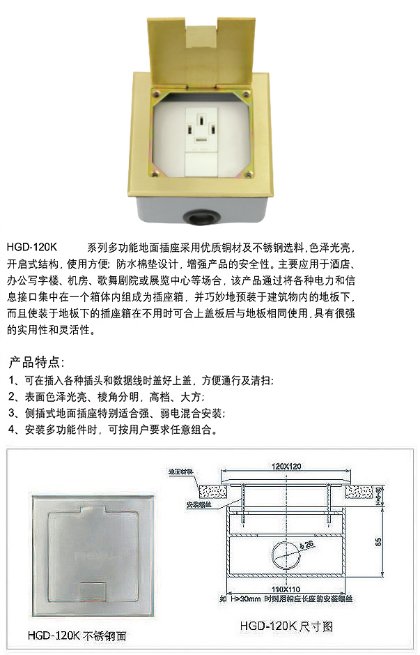 HGD-146K 120K系列开启式地面插座