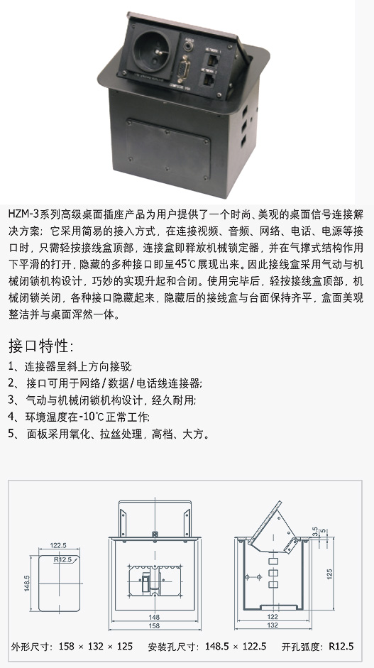 HZM-3系列高级(气杆式)桌面插座