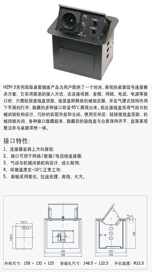 HZM-3系列高级(气杆式)桌面插座