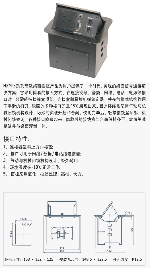 HZM-3系列高级(气杆式)桌面插座