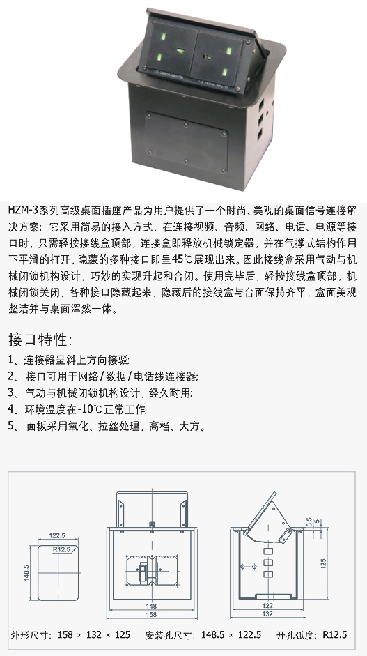 HZM-3系列高级(气杆式)桌面插座
