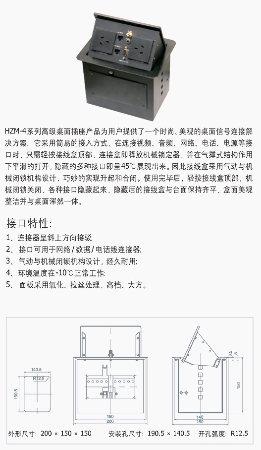 HZM-4系列高级(气杆式)桌面插座