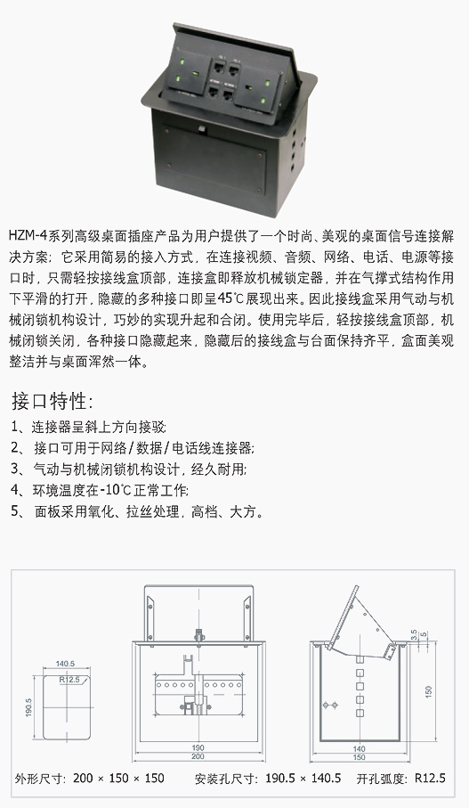 HZM-4系列高级(气杆式)桌面插座